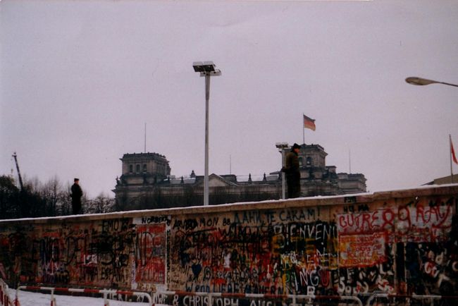 | ** | ![]() Berlin 1989 - The papers were full of it, the TV focussed on it...The Berlin Wall could be coming down soon. I decided to see if I could be present during this event and found that a trip was being organised to go into West Berlin. The flights would be from Luton to Tegel and back. So I booked my seat but had an idea in mind....I would bring some wall back to be auctioned in the Slough Breast Scanner Appeal. I negotiated with my friend at the Slough Observer who pledged me some of my air fare. A couple of friends at "Hawk" the local motorcycle couriers pledged money if I would photograph their logo (which they supplied) stuck on the Wall. A local publisher offered me money to take some copies of a new book about Slough and give them to the east Germans ! Finally the shop at which I worked pledged me money when I got major publicity standing outside the shop wearing a hard hat. I drove up to Luton and parked the car and went over to the area where we were to meet up. It was cold and we were glad to board the aircraft and settle down. In two hours we landed at Tegel and once we had cleared we were met by a courier who took us to a coach on which we went down to Scheidemannstrasse which is beside the Reichstag. ![]() ![]() ![]() ![]()